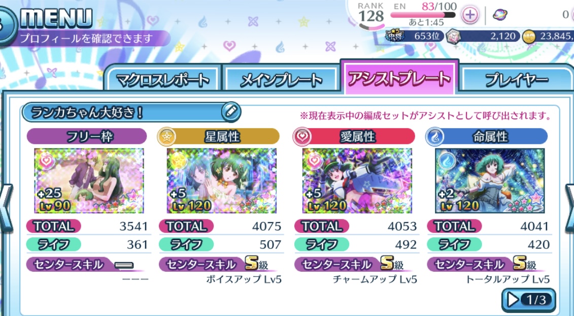 コツコツと課金し、推しの衣装を集め、音ゲーもノーマルしか出来なかったへっぽこが一番難しい難易度まで出来るように…… ここ1年はかなりイベントもゆるーく参加していましたが、サービス終了のお知らせが4月中旬にでましてそこからは心残りがないようあれやこれや頑張りました。(とはいっても、途中モチベがだれる時もある…苦笑)