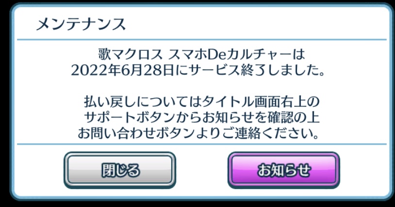 サービス終了、ありがとう歌マクロス