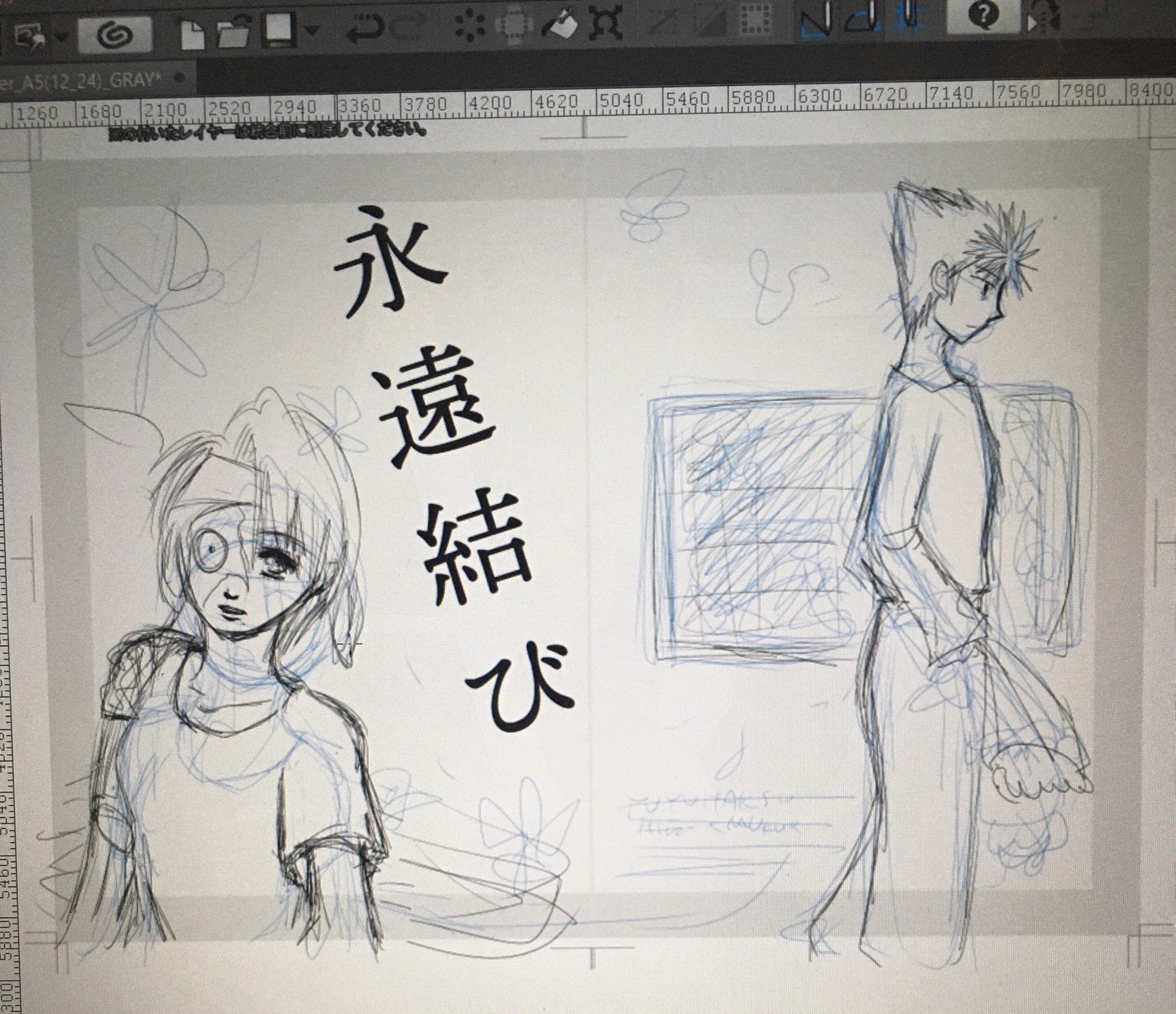 今回は一色刷りなので、ちょっと綺麗な線で絵を描こうと試行錯誤中。雰囲気重視!!笑