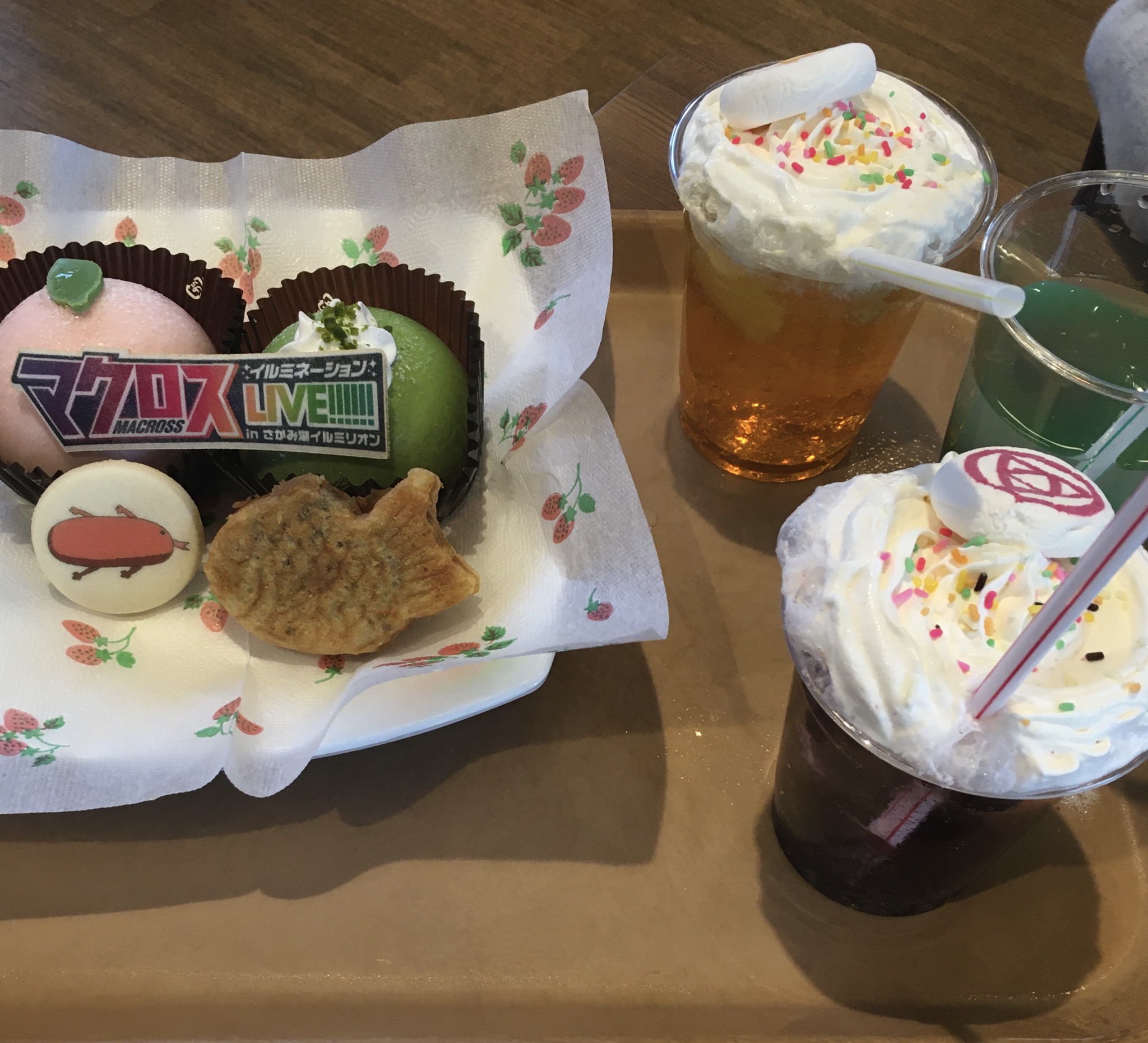 ドリンクはランカちゃん、フレイア、美雲さんのを頼んだのですが、ランカちゃんの緑ドリンクは次女にすごい勢いで飲まれました……(味は…、炭酸のないメロンソーダ的な奴w)