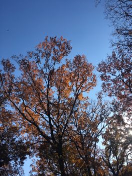 ちょっとした散策コースみたいなところに入っていったら落ち葉がたくさんあってシャクシャク音たてながら歩いたり、あと風が吹いてる訳でもなかったのに高い木からハラハラとたくさんの枯れ葉が落ちてきて、とっても幻想的な風景でした